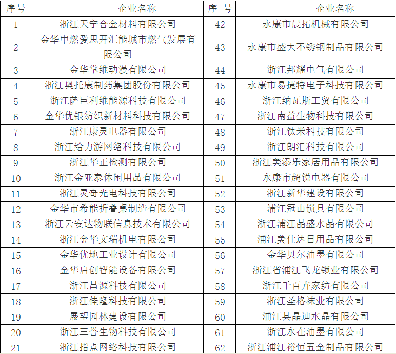 根據《金華市高新技術企業認定與管理辦法》(金政發﹝2009﹞92號)精神,擬認定浙江天寧合金材料有限公司等81家企業為金華市高新技術企業,現予以公示,接受社會監督。如有異議,請來人來電反映,以個人名義反映的,請署真實姓名;以單位名義反映的,須加蓋單位公章;匿名反映的材料不予受理。公示日期為10月31日至11月7日。