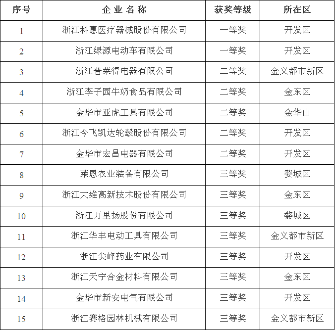 2017年金華市專利實施獎擬獎勵名單