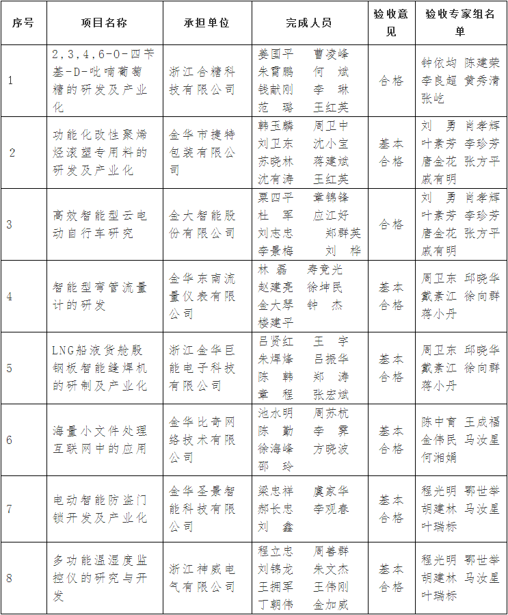 金華市級科技計劃項目驗收結果公示清單