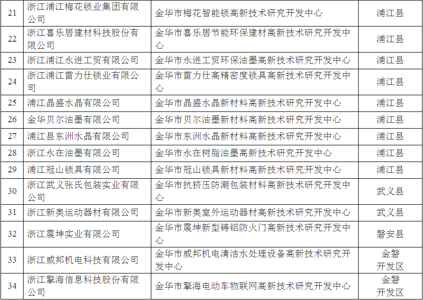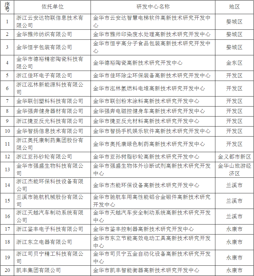 附件:2018年第一批金華市擬認定高新技術研發中心名單