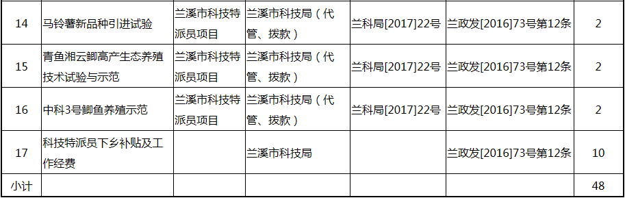 根據《關于實施創新驅動戰略大力推進大眾創業萬眾創新的若干意見》(蘭政發〔2016〕73號)和《蘭溪市科技創新券實施管理辦法》(蘭科局〔2016〕17號)等文件精神,現將2017年度科技創新專項資金獎勵及補助方案予以公示,公示期五個工作日,自2018年  7月3日至 7月9日。公示期內,如對公示擬補助對象有疑議的,請及時向市科技局辦公室反映。