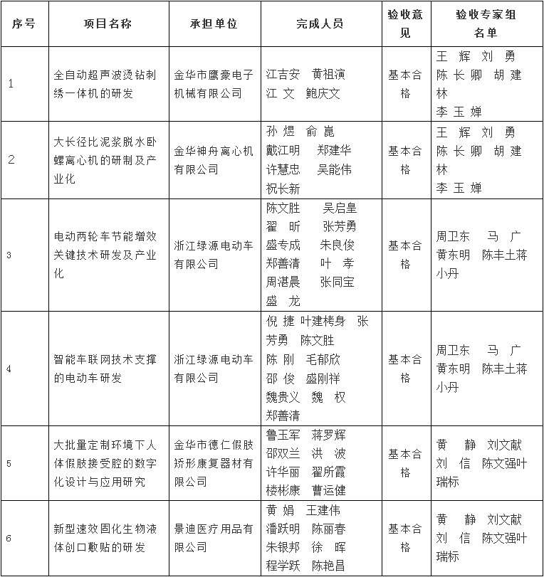 根據《金華市級科技計劃項目驗收管理辦法》(金市科字〔2015〕83號)規定,現將金華市鷹豪電子機械有限公司、金華神舟離心機有限公司、浙江綠源電動車有限公司、金華市德仁假肢矯形康復器材有限公司、金華市景迪醫療用品有限公司承擔的《全自動超聲波燙鉆刺繡一體機的研發》、《大長徑比泥漿脫水臥螺離心機的研制及產業化》、《電動兩輪車節能增效關鍵技術研發及產業化、智能車聯網技術支撐的電動車研發》、《大批量定制環境下人體假肢接受腔的數字化設計與應用研究》、《新型速效固化生物液體創口敷貼的研發》5家企業6個市級科技計劃項目驗收結果予以公示,接受社會監督,公示期從2018年7月16日至7月23日止。