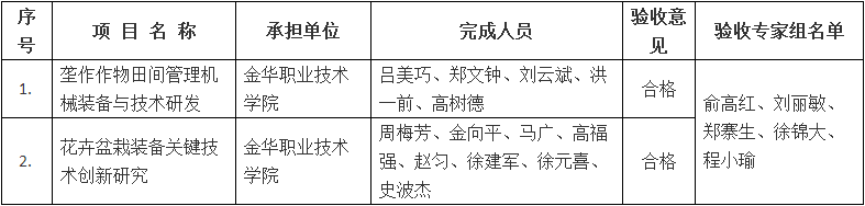 根據《金華市級科技計劃項目驗收管理辦法》(金市科字〔2015〕83號)規定,現將金華職業技術學院承擔的《壟作作物田間管理機械裝備與技術研發》等市級科技計劃項目驗收結果予以公示,接受社會監督,公示期從2018年7月23日至2018年7月29日止。任何單位和個人對驗收意見持有異議的,應當在公示期內書面向市科技局提出異議,單位應采用書面形式并加蓋公章,個人應采用實名提出異議。
