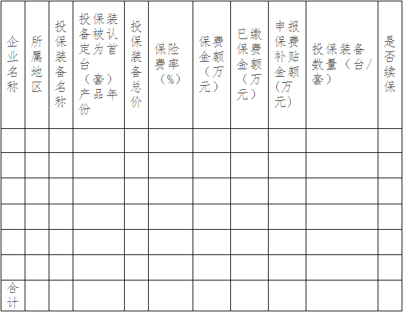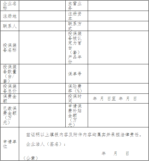 2018年浙江省首臺(套)重大技術裝備保費補貼申請表