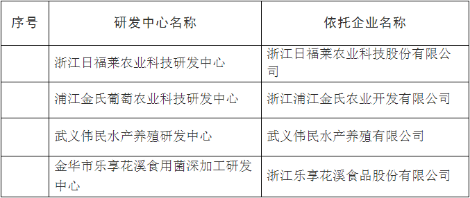 根據《關于深入實施創新驅動發展戰略大力推進大眾創業萬眾創新的若干意見》(金政發〔2016〕14號)和《金華市農業科技研究開發中心管理辦法》(金市科〔2009〕24號)等文件精神,在各縣(市、區)科技局推薦的基礎上,通過初審、實地核查、專家評審和公示等程序,經研究,認定“浙江日福萊農業科技股份有限公司”等4家企業組建的研發中心為金華市農業科技研究開發中心,現予公布。