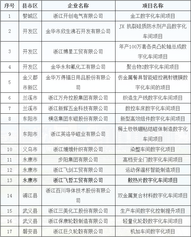 附件:2018年金華市“數字化車間”和“物聯網工廠”示范項目名單(20個)
