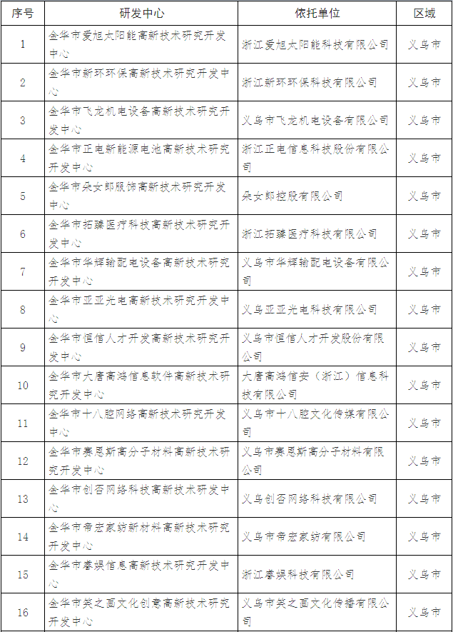 附件:2018年第三批金華市高新技術研究開發中心名單