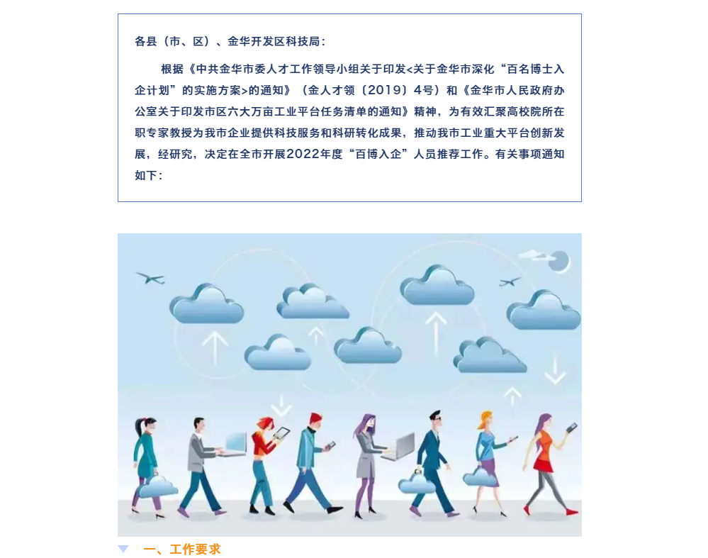 金華市科學技術局關于開展2022年度“百博入企”人員推薦工作的通知